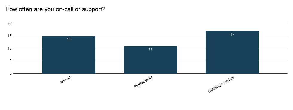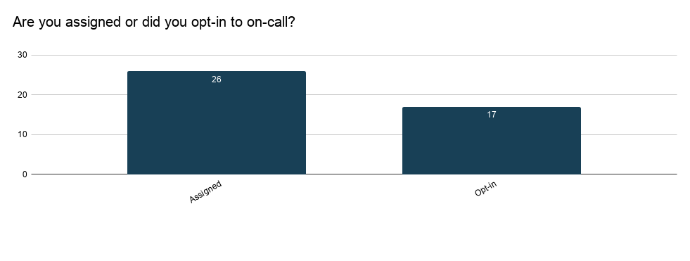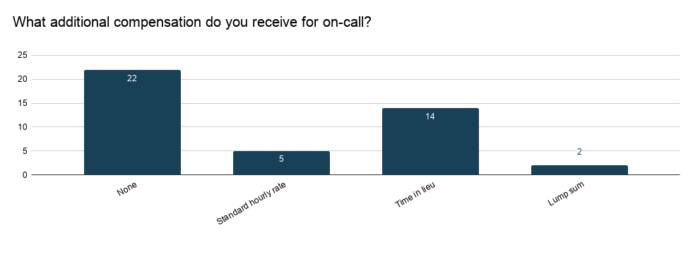 43 respondents report participating in on-call activities, where 51% indicate they are not provided additional compensation